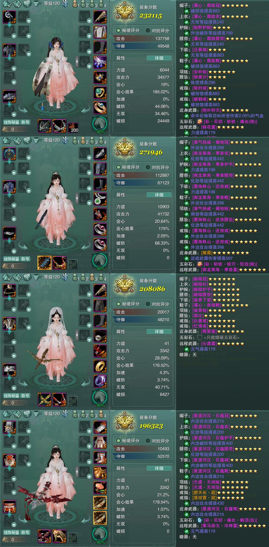 【装备】惊羽诀PVE232115,惊羽诀PVP271946,天罗诡道PVE208086,天罗诡道PVP196323