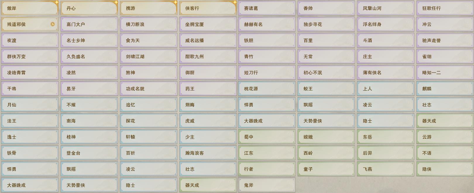 【奇珍】32个[枫林酒, 红衣歌, 归乡路, 胜负局, 孩童书, 捉妖记, 稚子心, 滇南行, 青草歌, 破晓鸣]