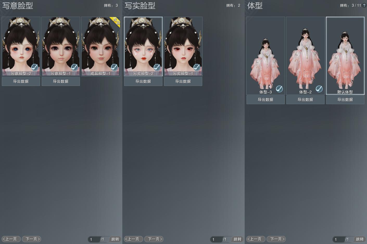 【捏脸】写意脸型3个,写实脸型2个,体型3个