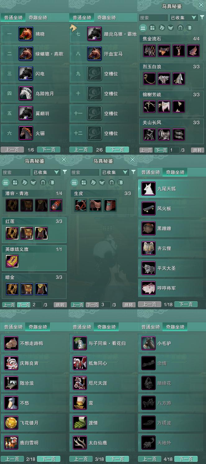 【坐骑】8个[踏炎霸地, 乌蹄抱月]