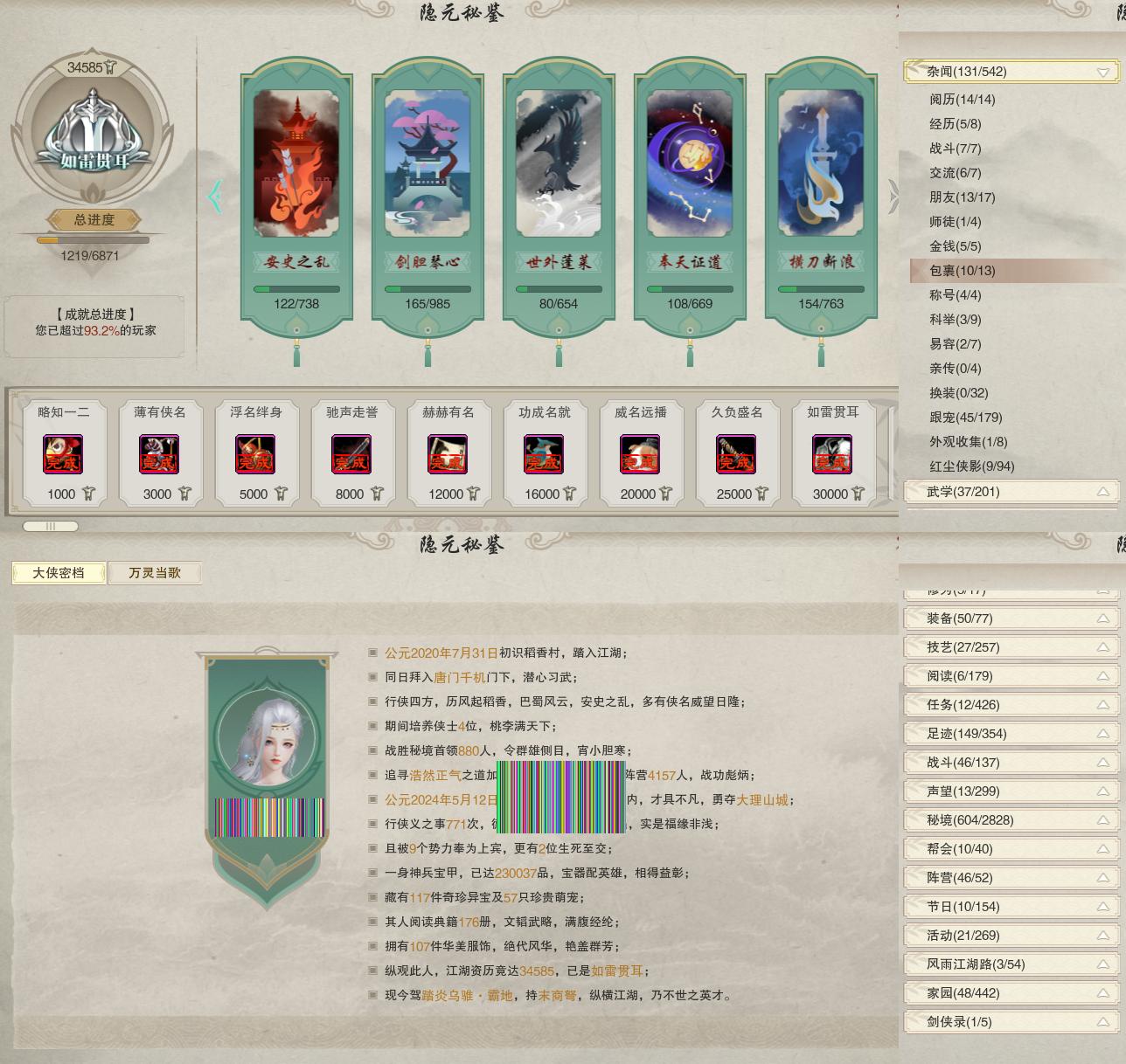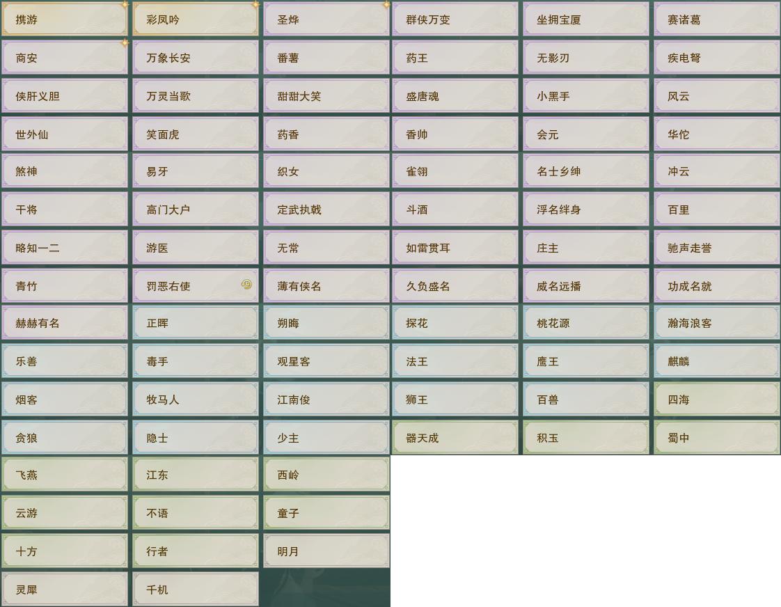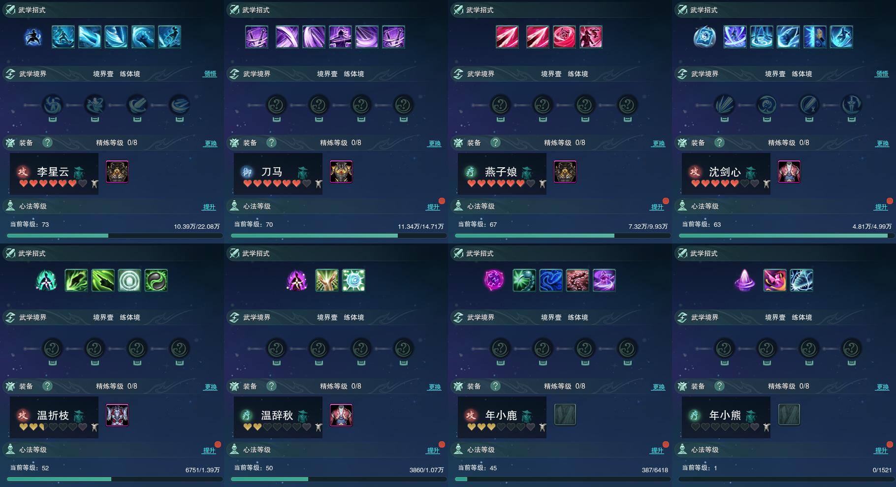 【同伴】李星云73级境界壹,刀马70级境界壹,燕子娘67级境界壹,沈剑心63级境界壹,温折枝52级境界壹,温辞秋50级境界壹,年小鹿45级境界壹,年小熊1级境界壹