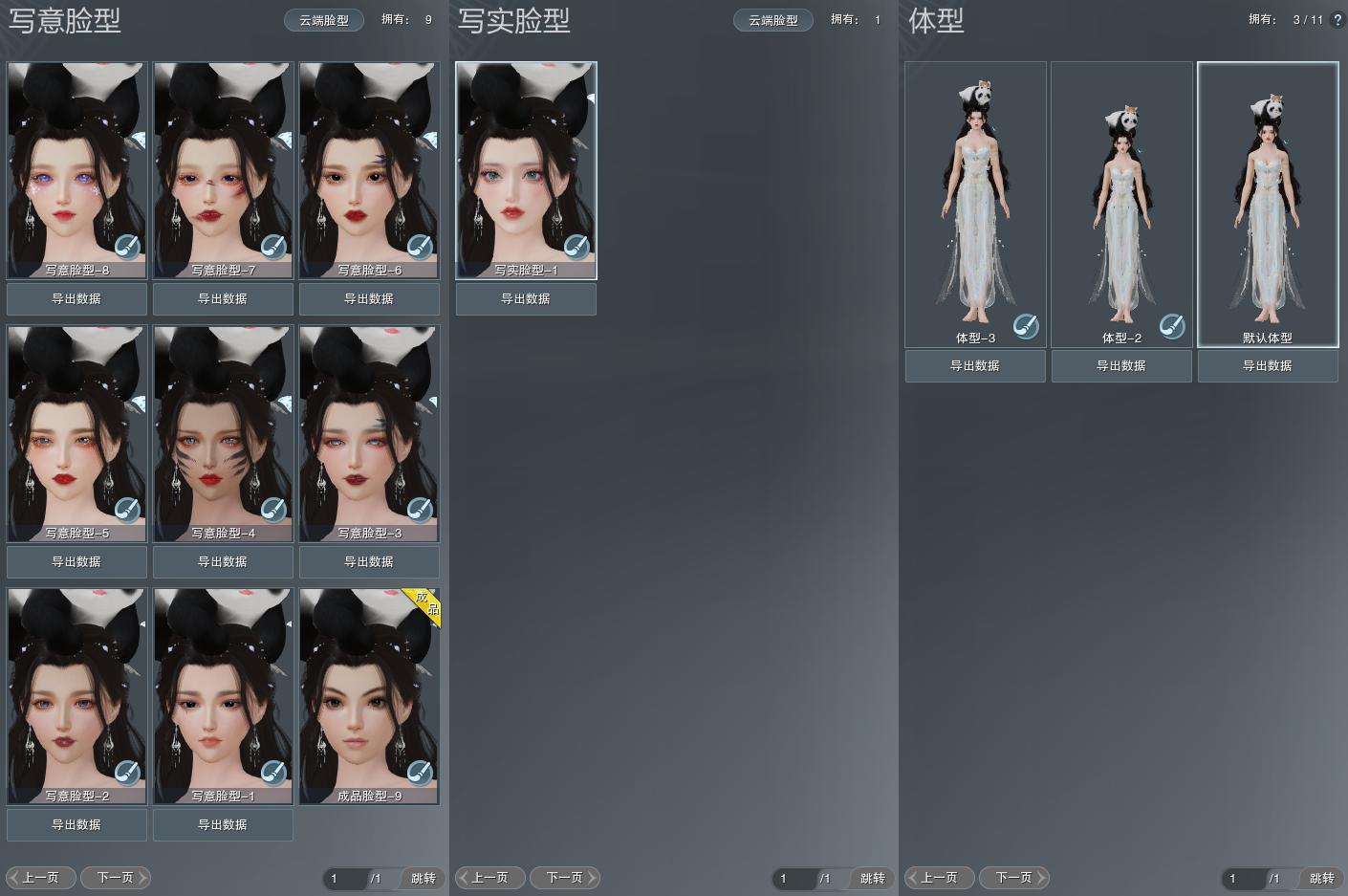 【捏脸】写意脸型9个,写实脸型1个,体型3个