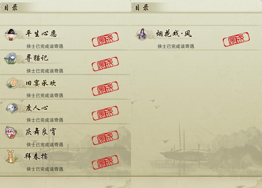 【奇遇】6个[平生心愿, 寻猫记, 庆舞良宵, 度人心, 旧宴承欢, 拜春擂]