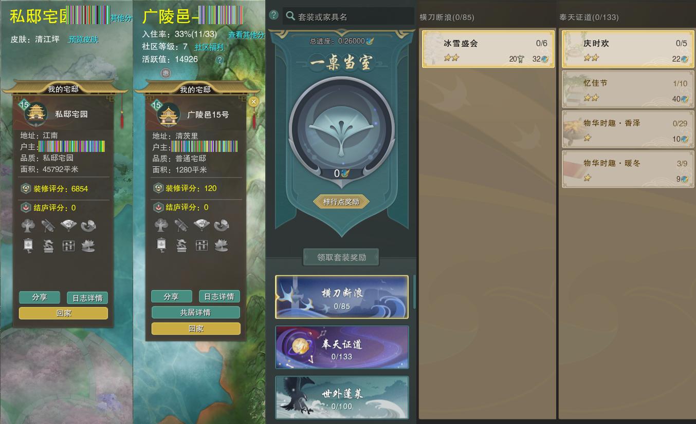 【家园】房屋等级15,社区等级7,私邸宅园,梓行点0
