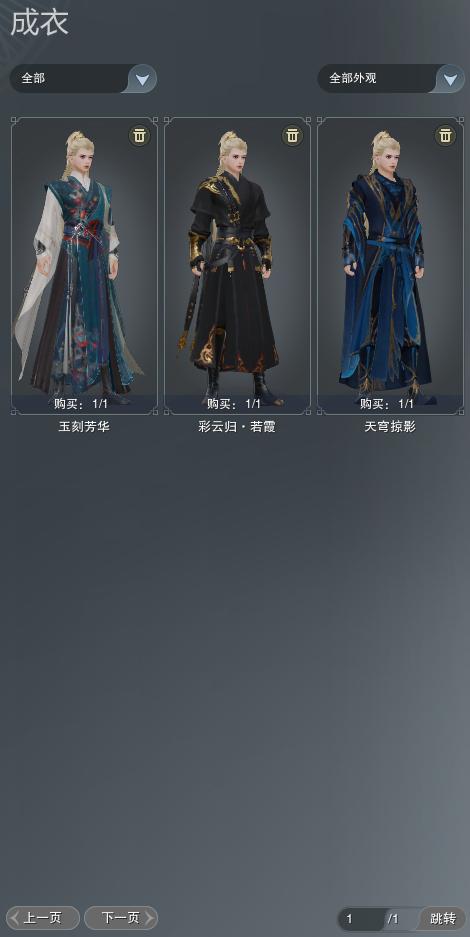 【成衣】总计3件,单盒成衣1件,限时限量1件,商城1件,下架0件,帽子0件