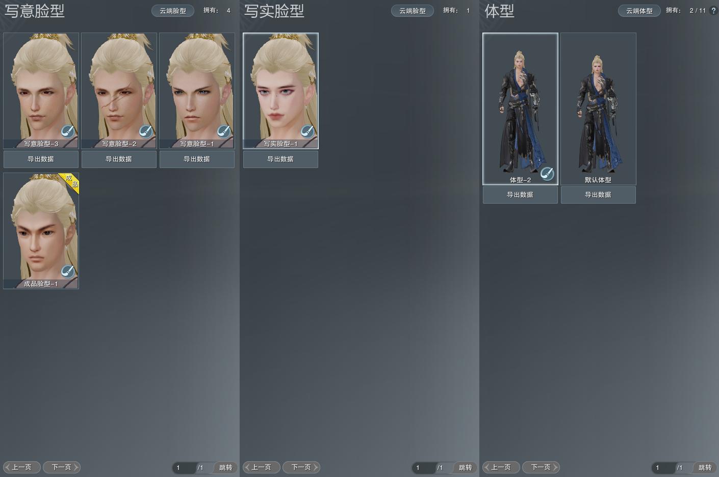【捏脸】写意脸型4个,写实脸型1个,体型2个