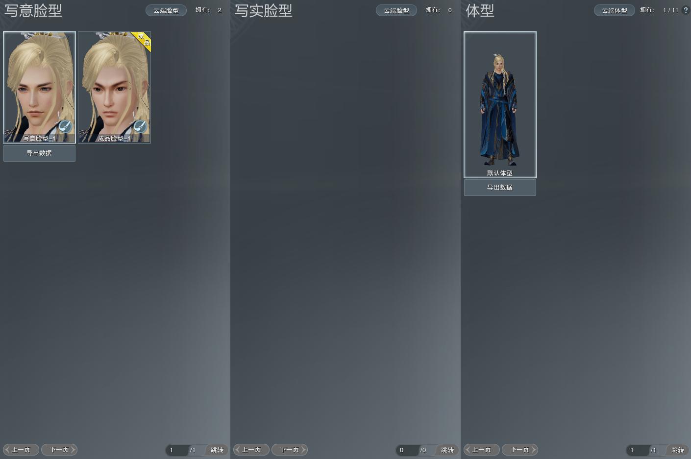 【捏脸】写意脸型2个,写实脸型0个,体型1个