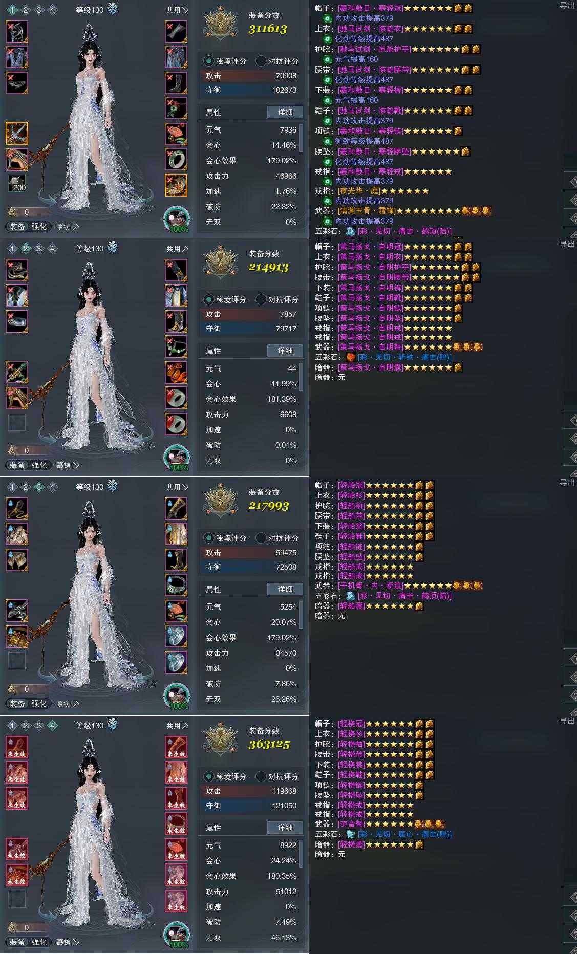 【装备】130级,装备一311613,装备二214913,装备三217993,唐门装备四363125