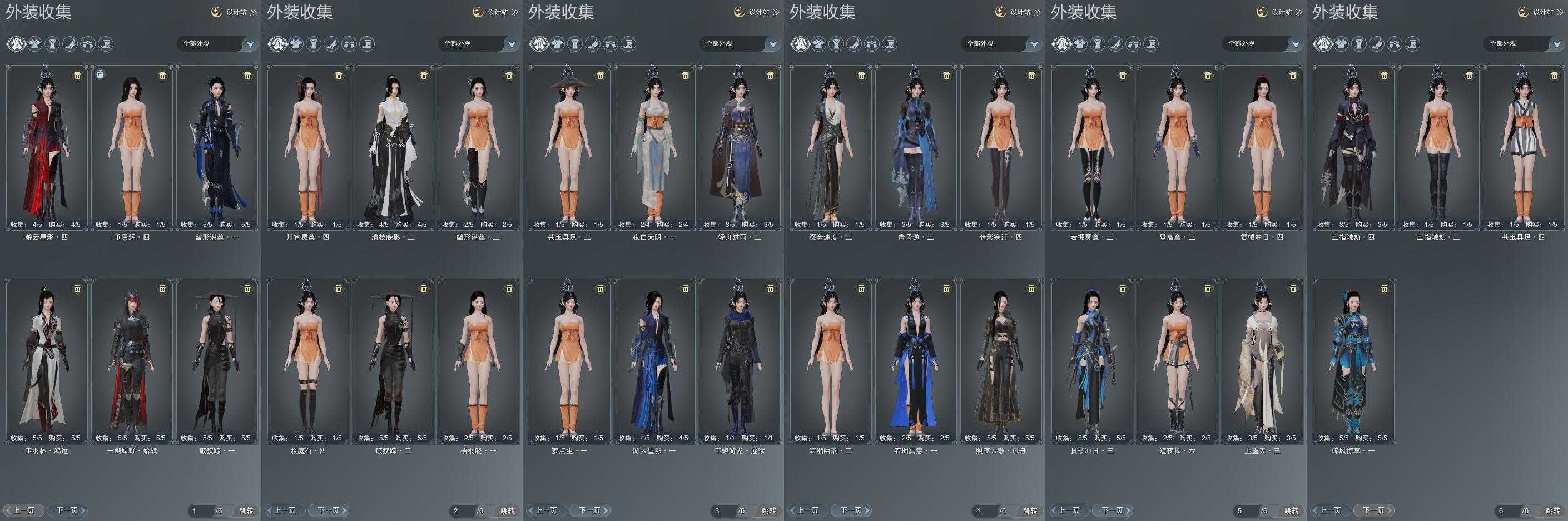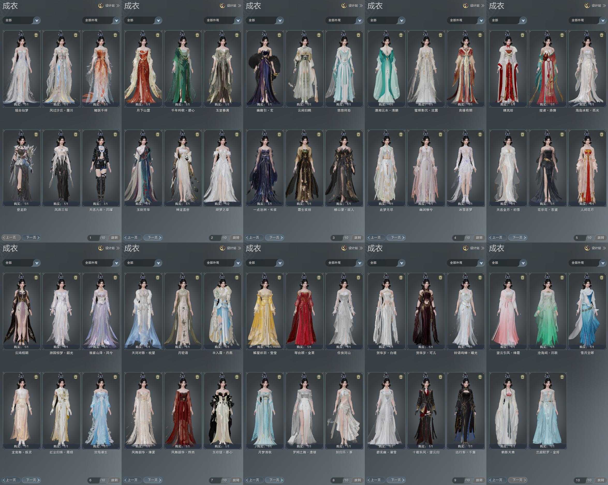 单盒成衣:[三代中秋衣, 旗袍衣, 白凤舞衣, 芙蓉盒衣, 熊猫盒衣]