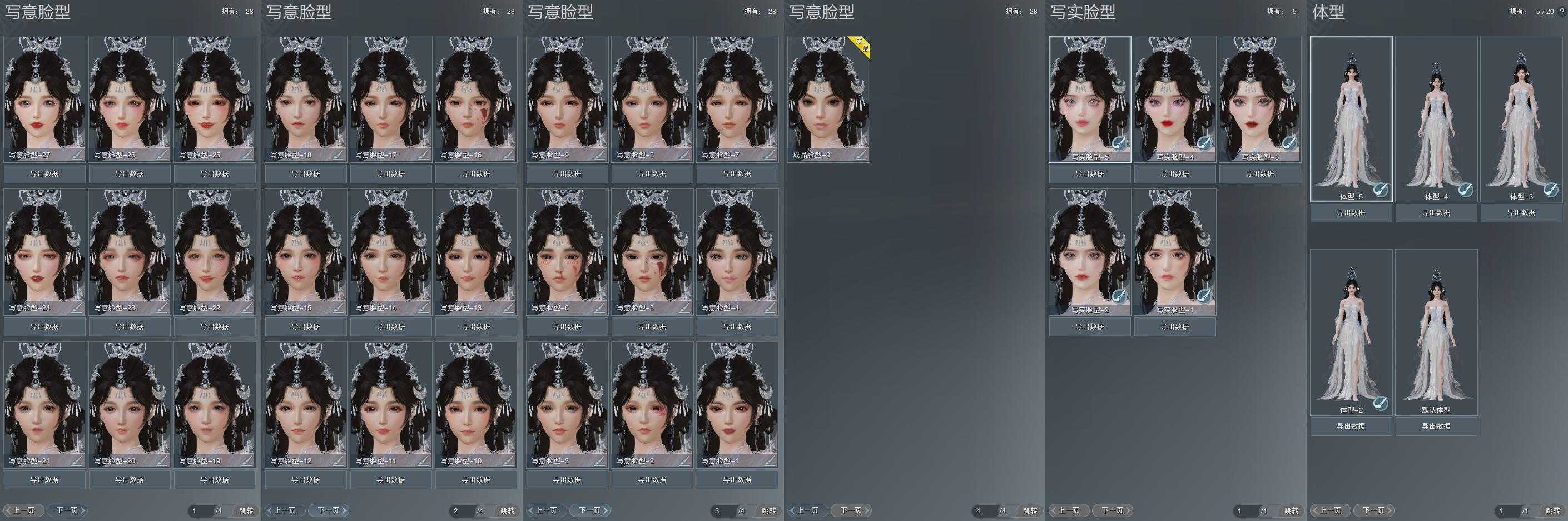 【捏脸】写意脸型28个,写实脸型5个,体型5个