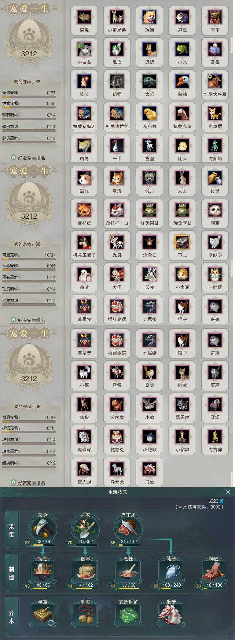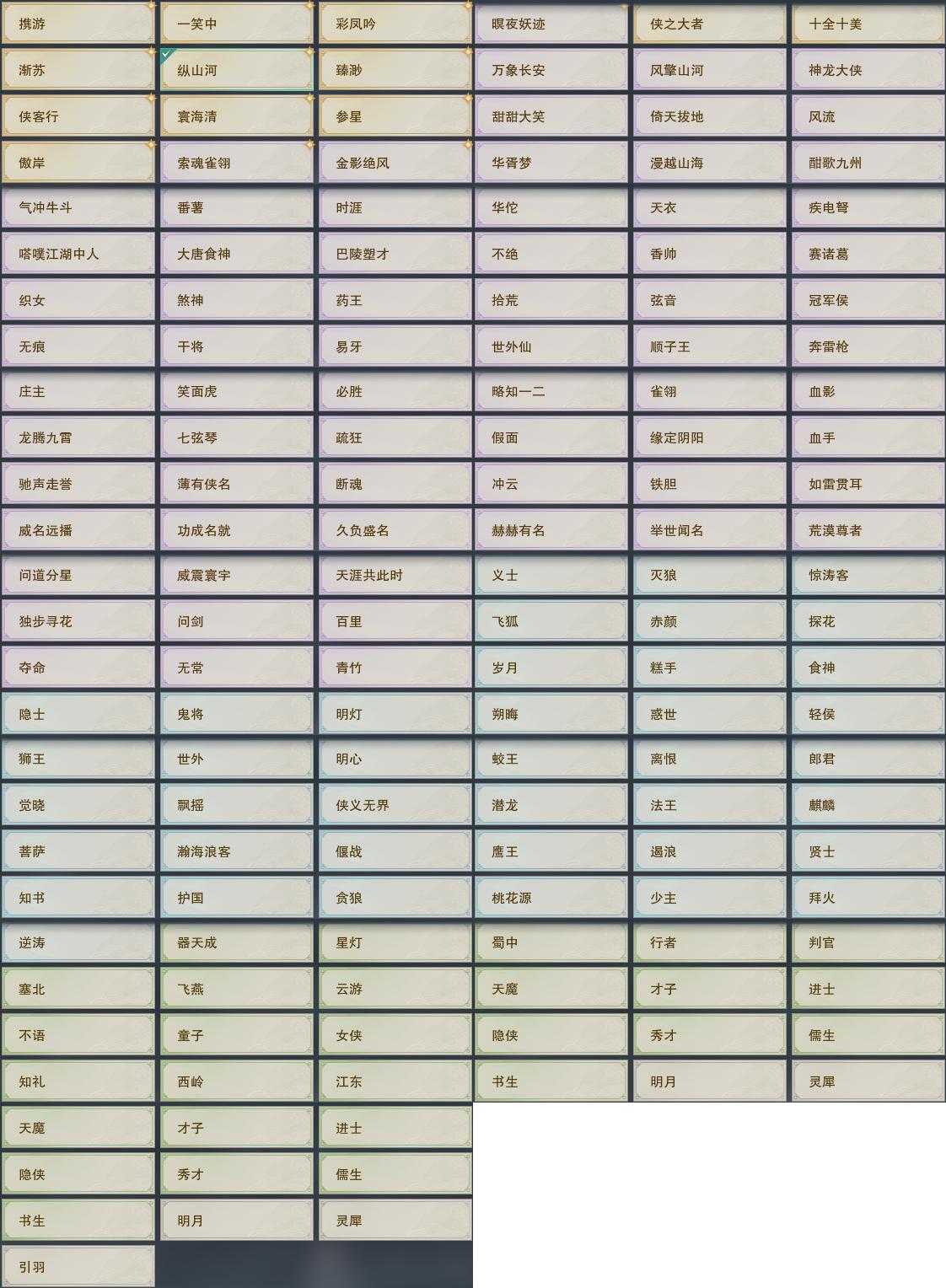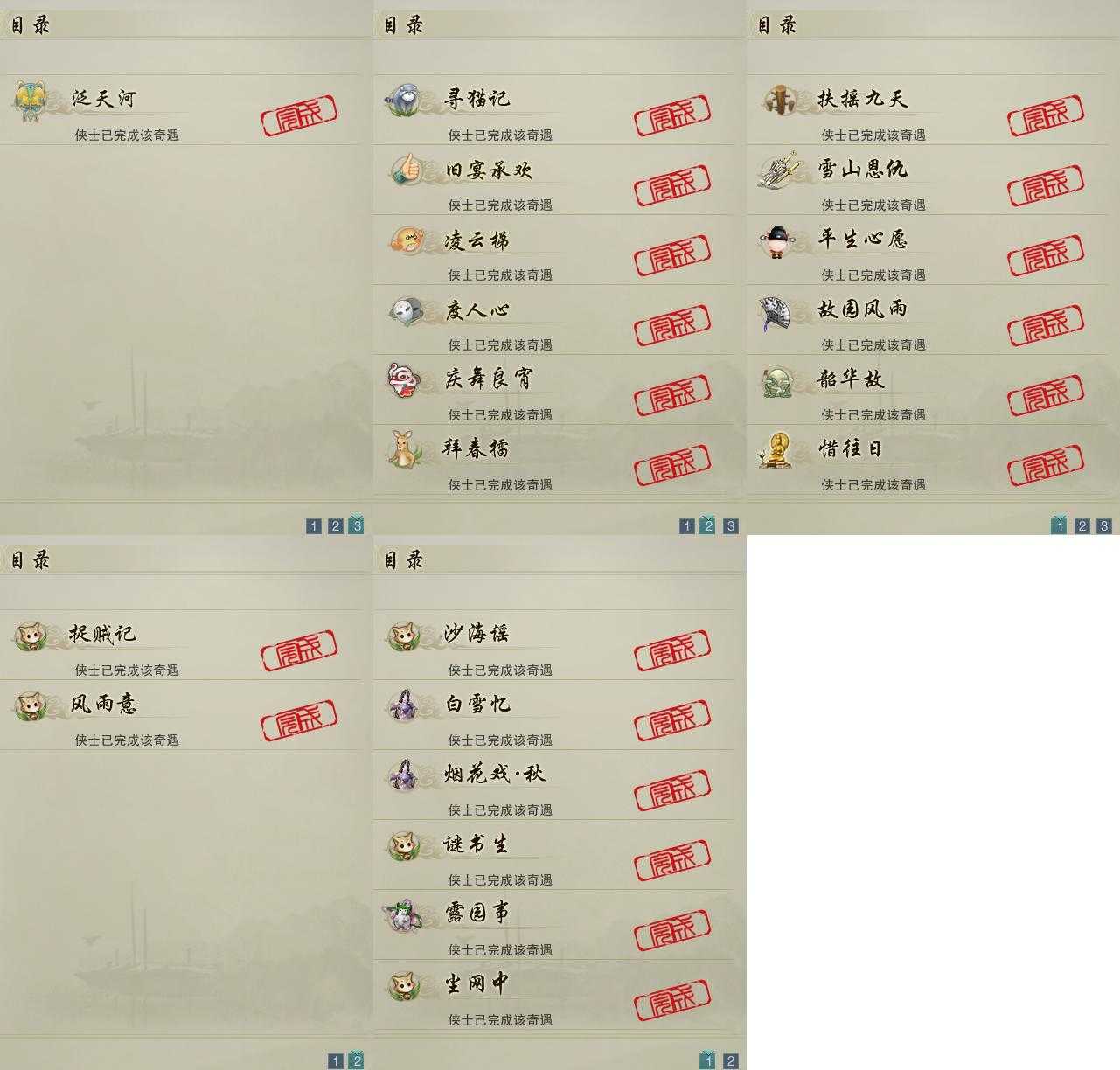 【奇遇】13个[雪山恩仇, 平生心愿, 惜往日, 韶华故, 扶摇九天, 故园风雨, 寻猫记, 庆舞良宵, 凌云梯, 度人心, 旧宴承欢, 泛天河, 拜春擂]